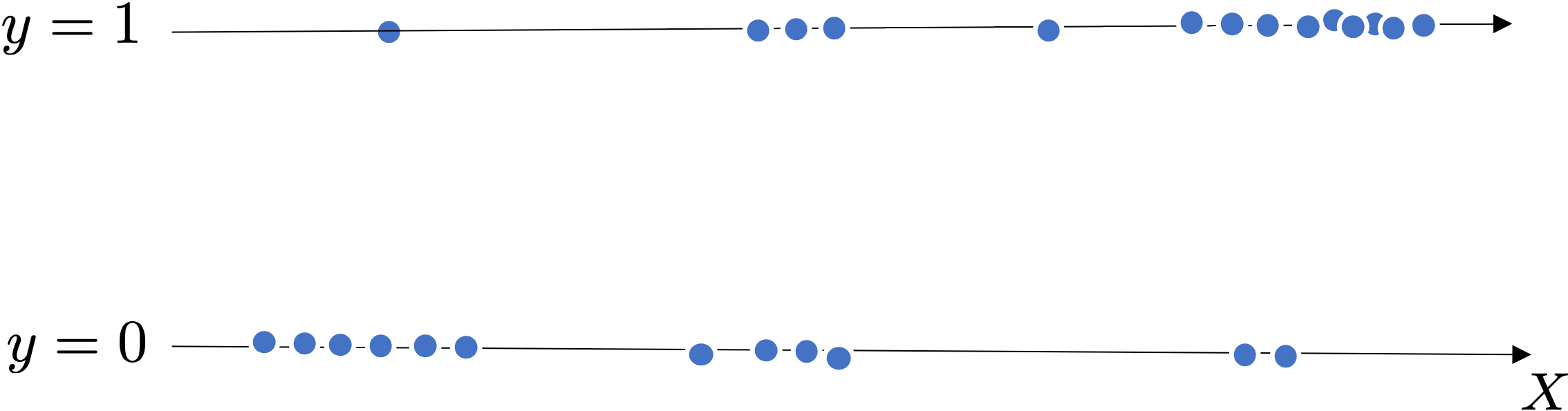 $\mbf{x}_i \in \mathbb{R}^d$ and $y \in \{0,1\}$
