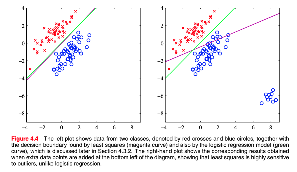 This has the same form as the decision boundary for the two-class case discussed before.