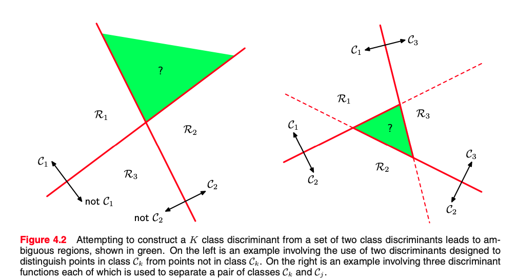Then also $\hat{\mbf{x}}$ is in $\mathcal{R}_k$, where $f_k(\cdot)$ is the hyper-plane: $$ f_k(\hat{\mbf{x}}) > f_j(\hat{\mbf{x}})\quad \forall j\neq k$$