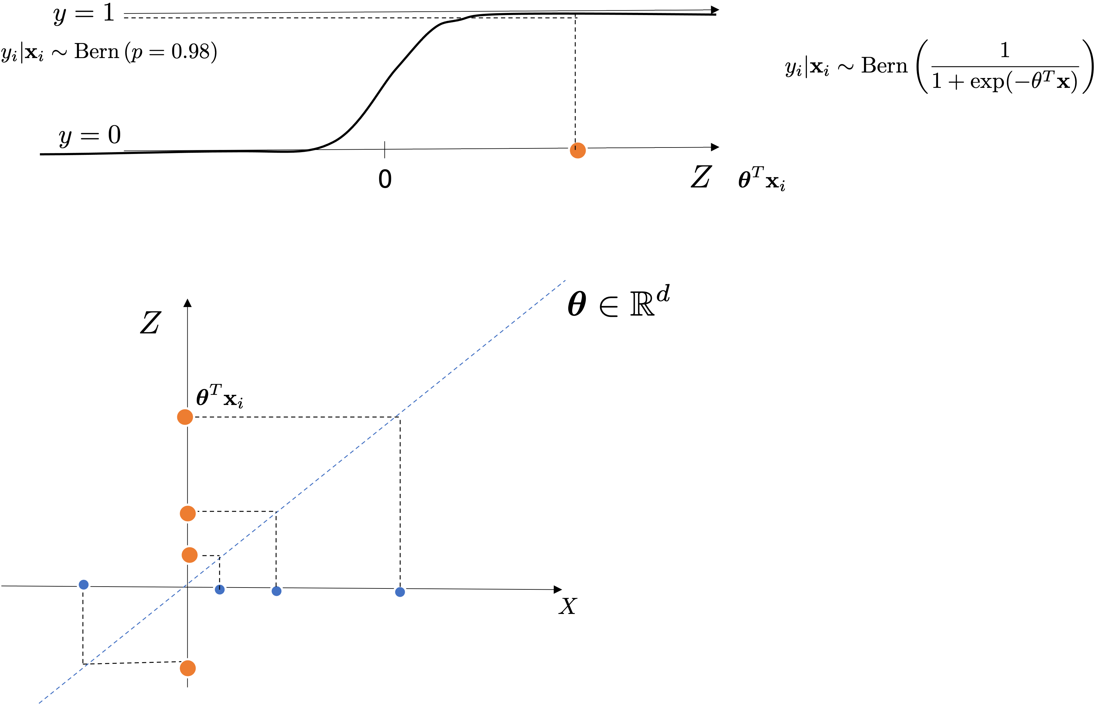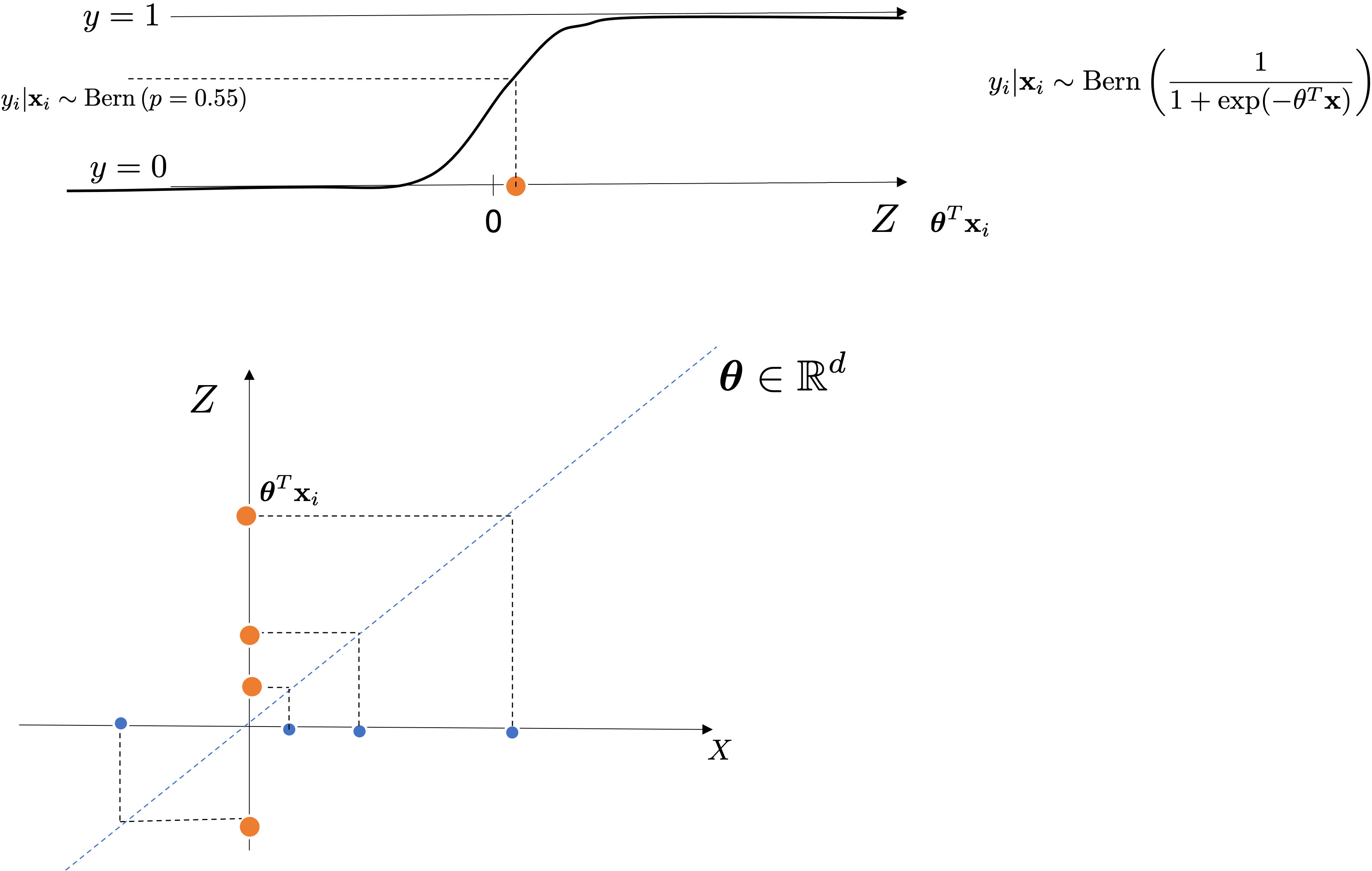 $$f_{\boldsymbol{\theta}}(\mbf{x}) \doteq \sigma\left( \bmf{\theta}^T\mbf{x} \right)$$where: